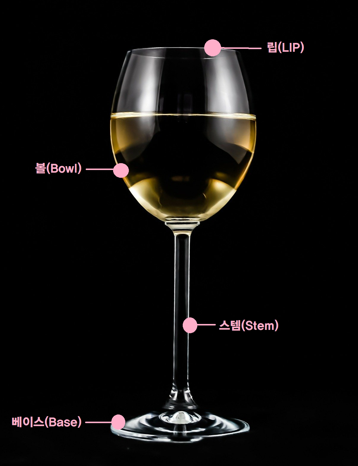 립(Lip), 볼(Bowl), 다리(Stem), 받침(Base)