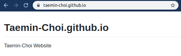 저장소가 생성되면 다음과 같이 주소에 {USERNAME}.github.io 을 입력한 뒤 접속하시면,