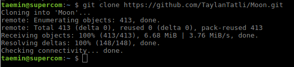 - 예시) git clone https://github.com/TaylanTatli/Moon.git